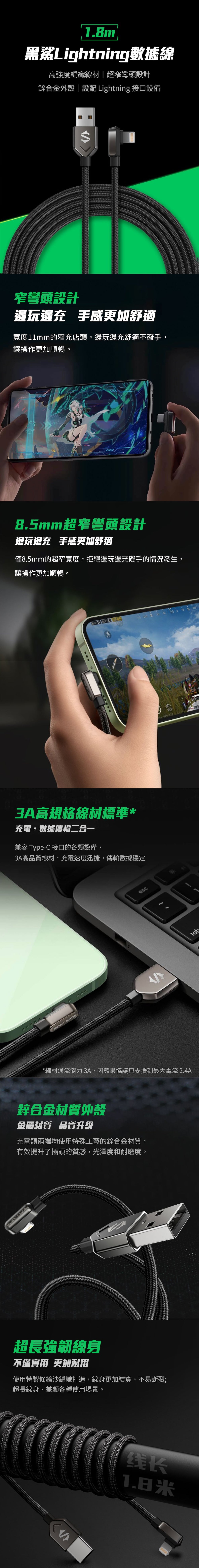 【黑鯊BlackShark】L型電競快充線(1.8m)
