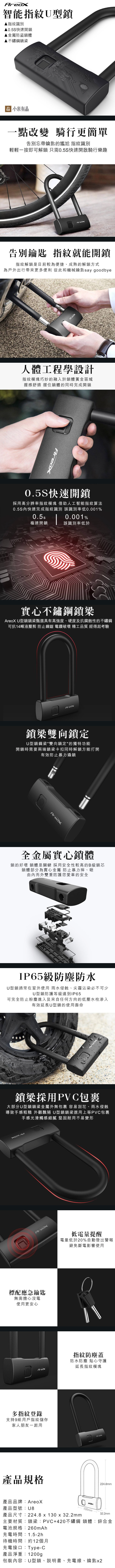 【Areox】智能指紋U型鎖