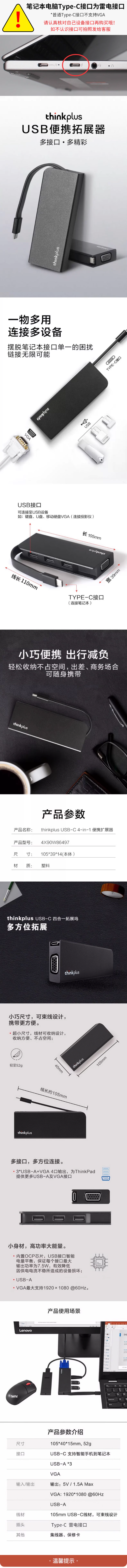 【Lenovo】thinkplus USB-C 4-in-1 便攜擴展器 (無VGA接口) 數量減少